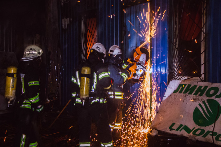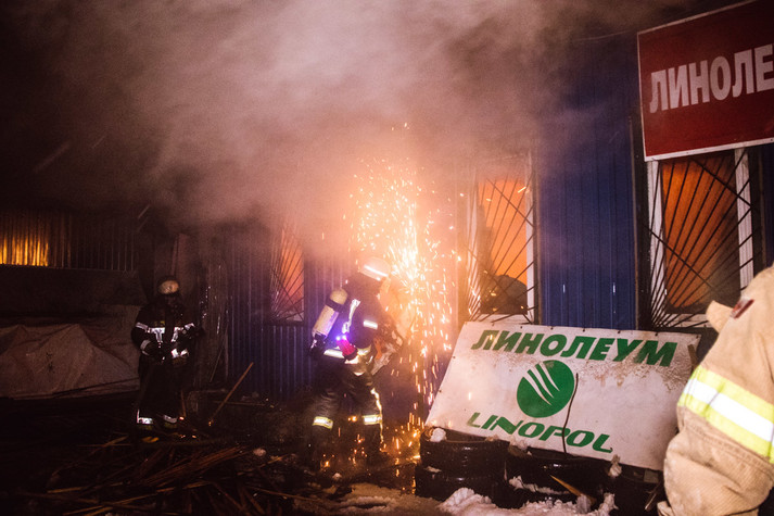 Станом на 3:50, загоряння ще не локалізували, а вогонь з одного приміщення з лінолеумом і деревиною продовжував поширюватися далі на сусідні будівлі. У торгову точку, в якій сталося замикання, співробітники ДСНС не могли потрапити близько 30 хвилин. Вони розкрили двері в приміщення бензорізом, коли вогонь вже вибив все скло.