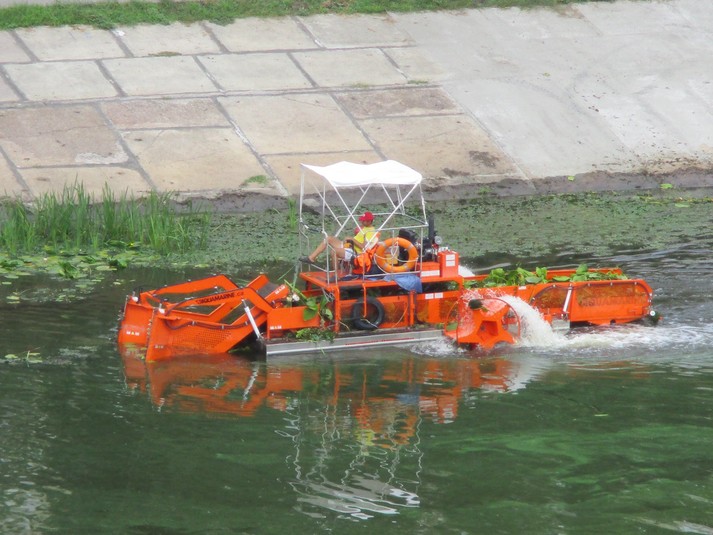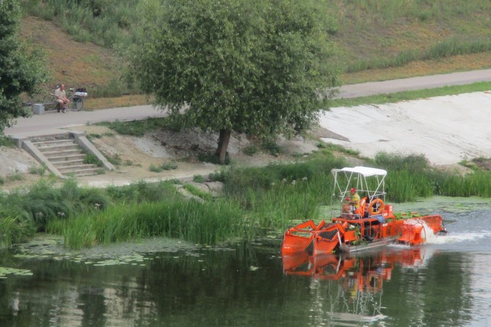 Плаваючий комбайн прибирає водорості і сміття