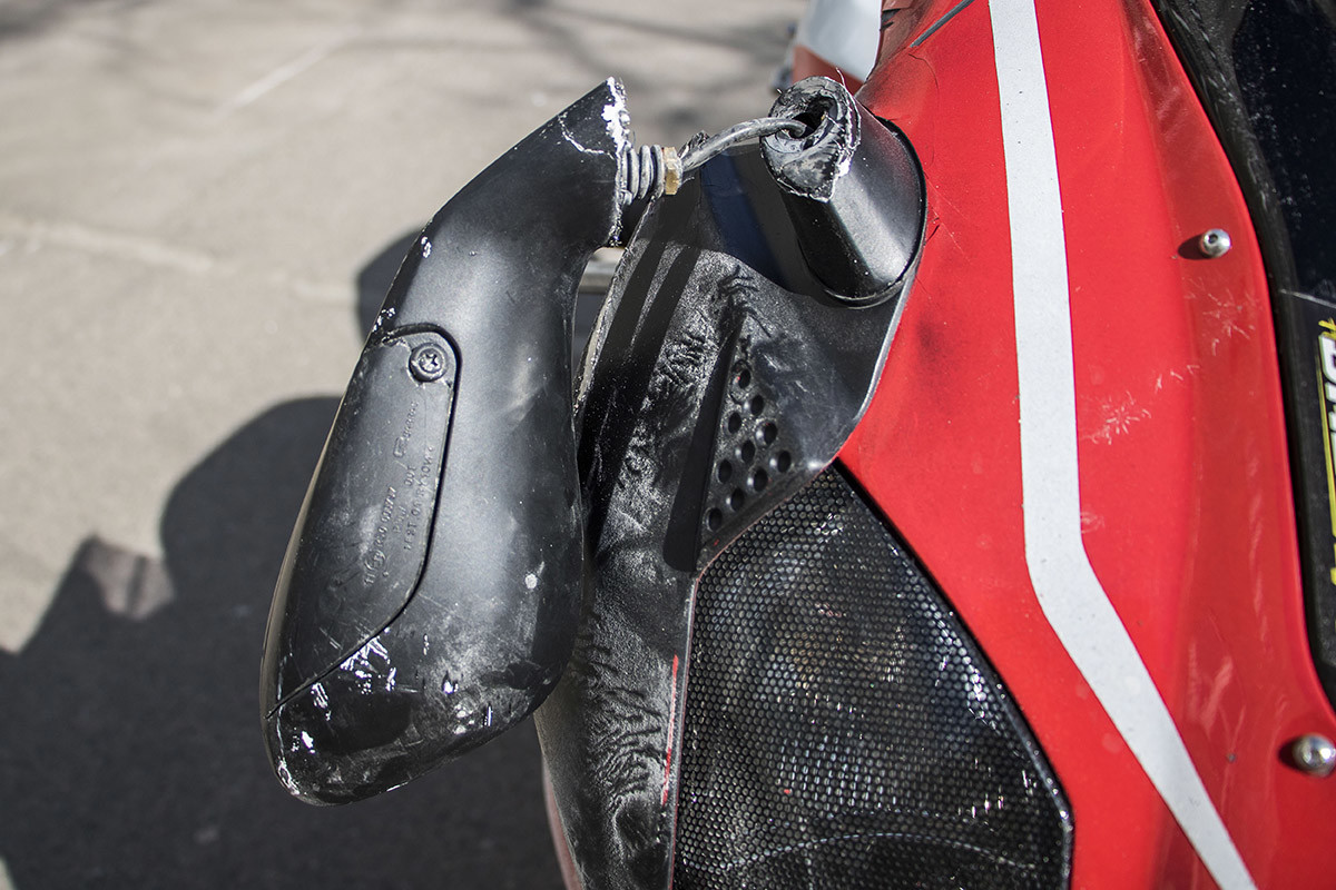 Постраждалій близько 22 років. З травмами середньої тяжкості її забрала «швидка». У власника мотоцикла забій ключиці.