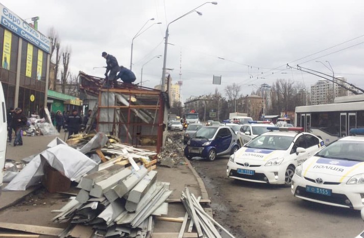 На Шулявці зносять МАФи: проти комунальників виставили «тітушок» (фото)