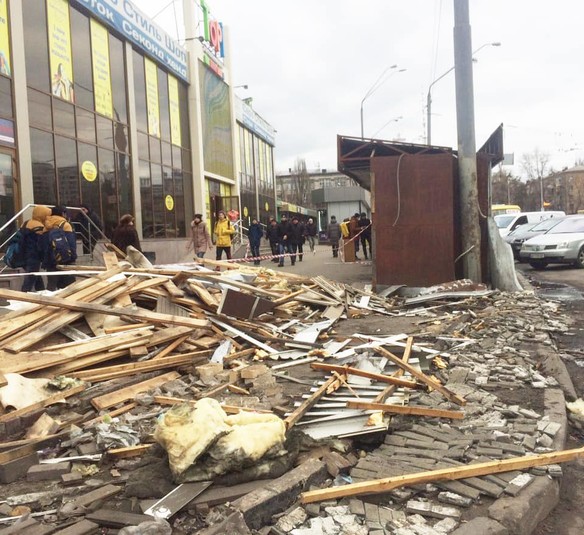 Нагадаємо, 27 лютого розпочався демонтаж торговельного ряду з ролетів біля станції метро «Шулявська».