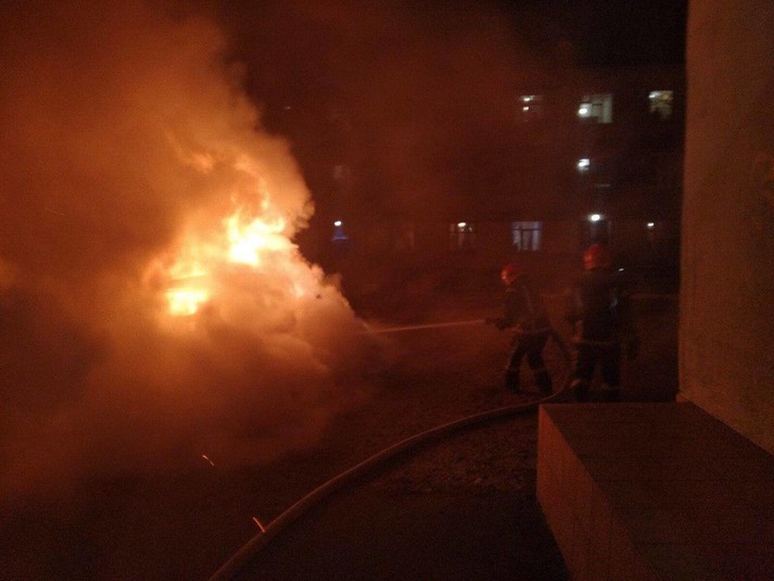 Палав автомобіль, припаркований у дворі будинку