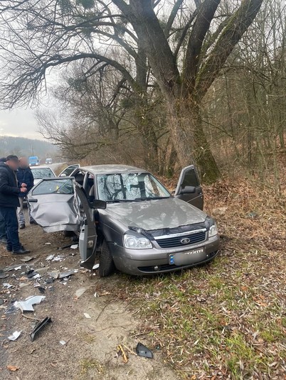 Автомобіль Lada Priora зіткнувся з деревом, а потім у нього врізався мікроавтобус Toyota
