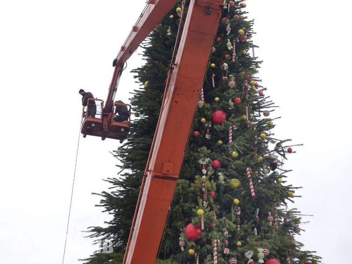 Комунальники почали розбирати головну ялинку країни. Наразі з дерева знімають величезні іграшки та гірлянди, повідомляє «Вечірній Київ».