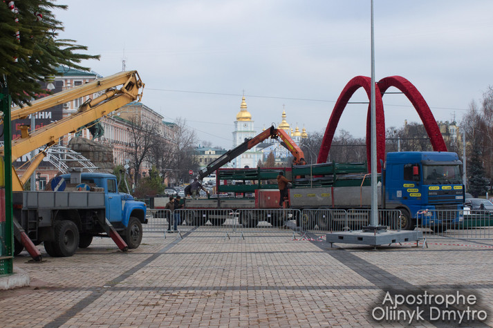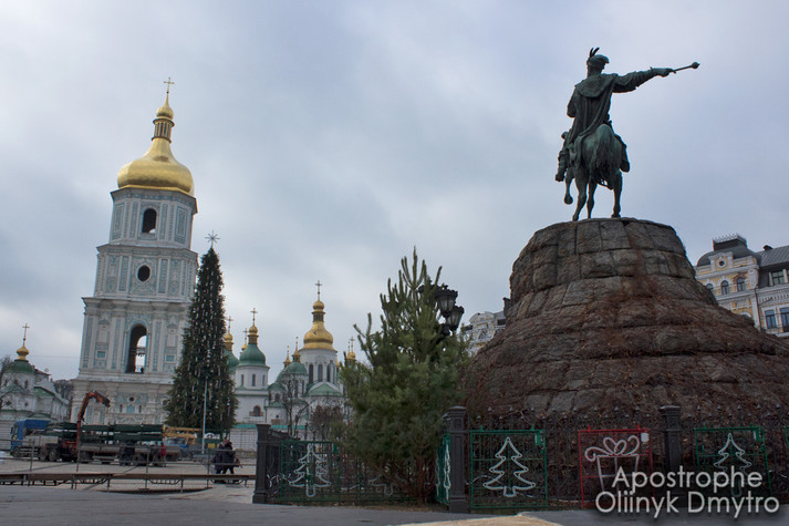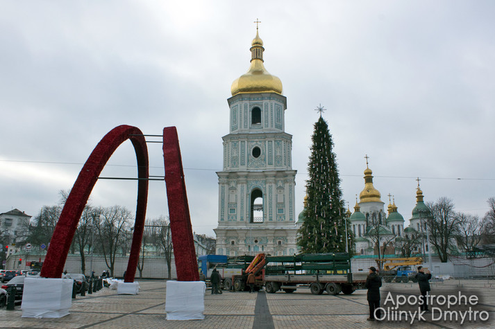 У Києві активно готуються до новорічних свят. На Софійській площі вже встановили зелену красуню.