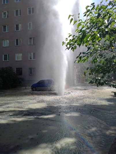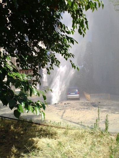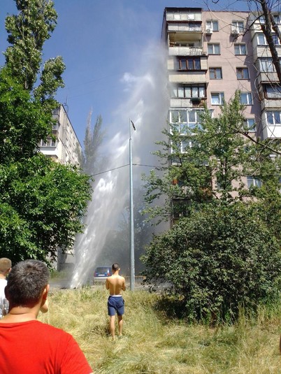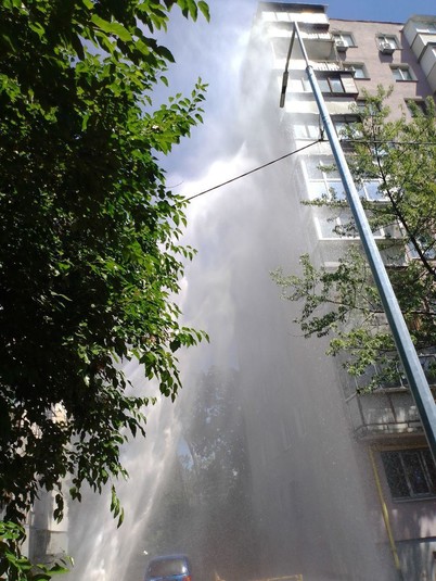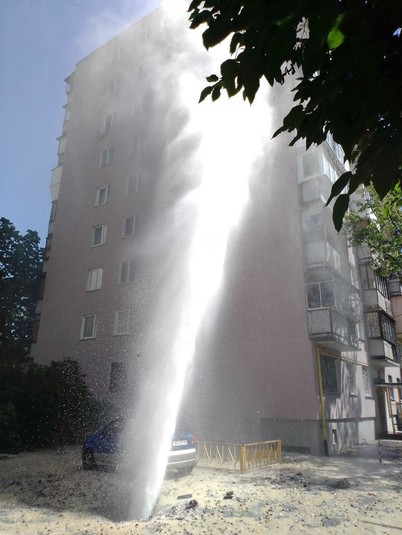 «Струмінь холодної води досягає верхніх поверхів дев’ятиповерхового будинку. Вода б’є під напором, в зв’язку з чим на балконах верхніх поверхів будинку вже видно пошкодження. У деяких місцях на засклених балконах вибито скло», – йдеться в повідомленні.