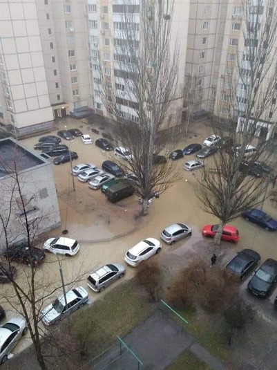 Автомобілі, припарковані у дворі, по колеса затоплені.