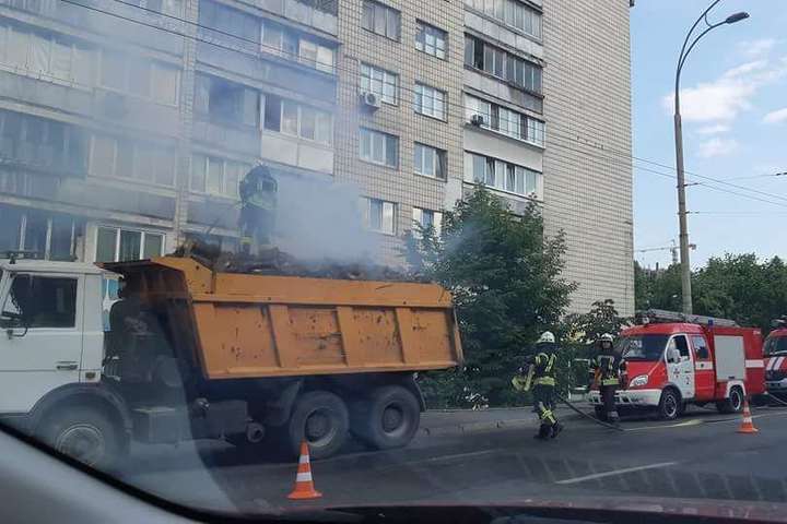 На столичній дорозі у вантажівці горіли дрова (фото)