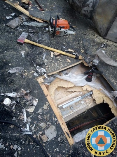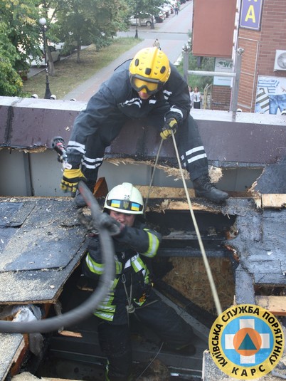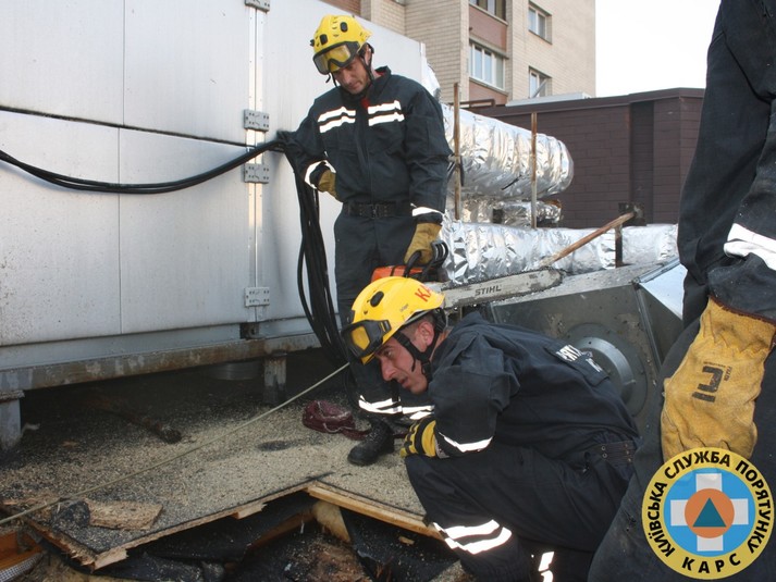 Рятувальники КАРCу допомогли вогнеборцям деблокувати перекриття даху для надання доступу до осередків загорання.
