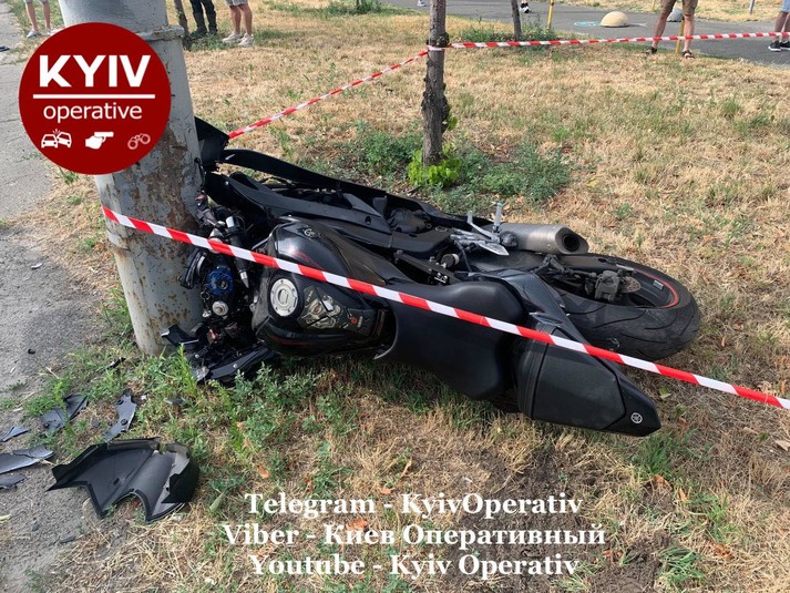 Внаслідок ДТП мотоцикл в’їхав ще й у стовп.