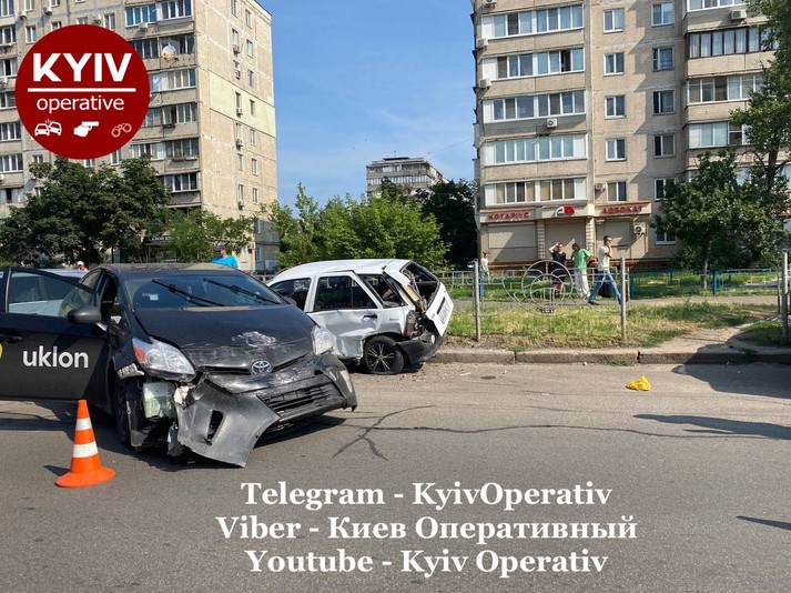 За попередніми даними, водій таксі служби Uklon на Toyota намагався проскочити перехрестя на червоний сигнал світлофора, але не встиг і зачепив автомобіль Audi.
