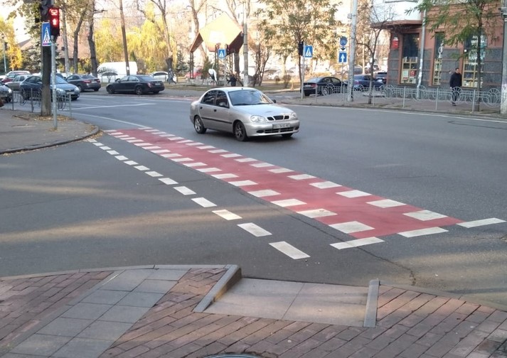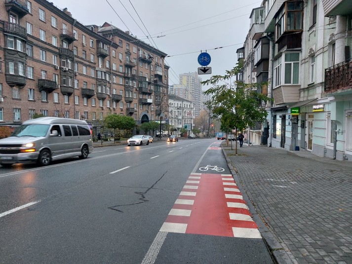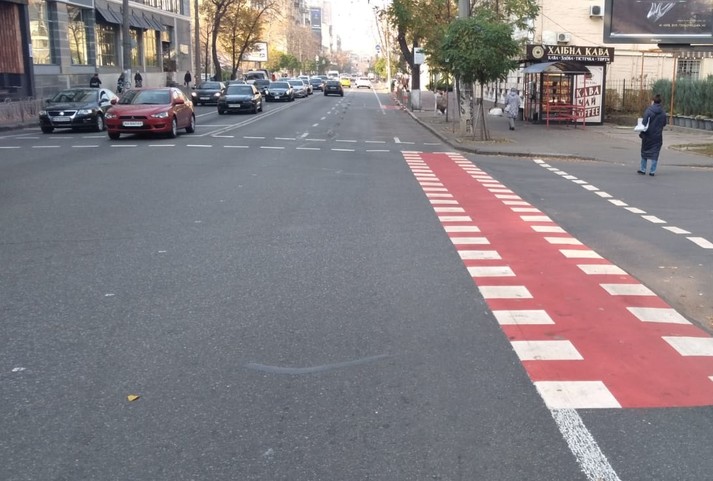 На столичній вулиці замість запаркованих автівками смуг з’явилися велодоріжки (фото)