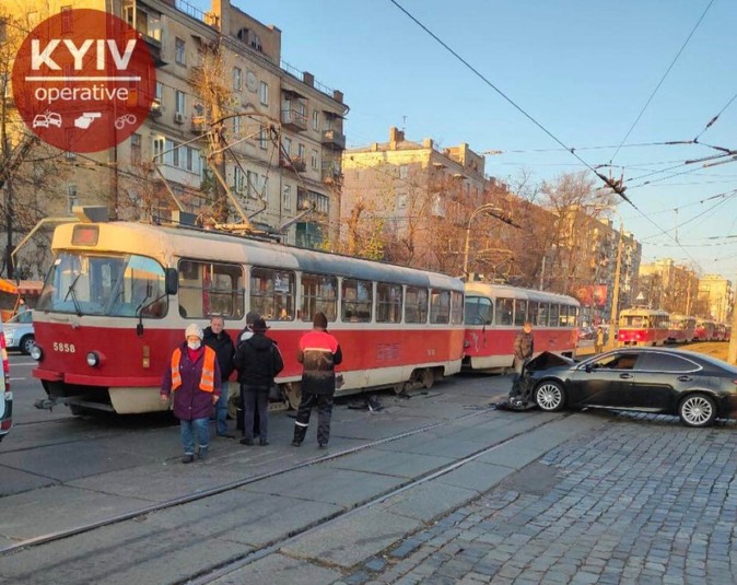 На столичному Подолі ДТП паралізувала рух трамваїв (фото)