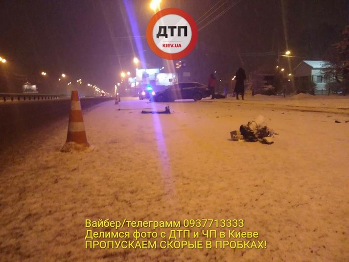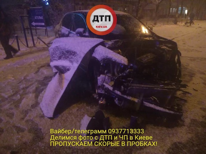На столичному проспекті Перемоги автомобіль розбився об стовп (фото)