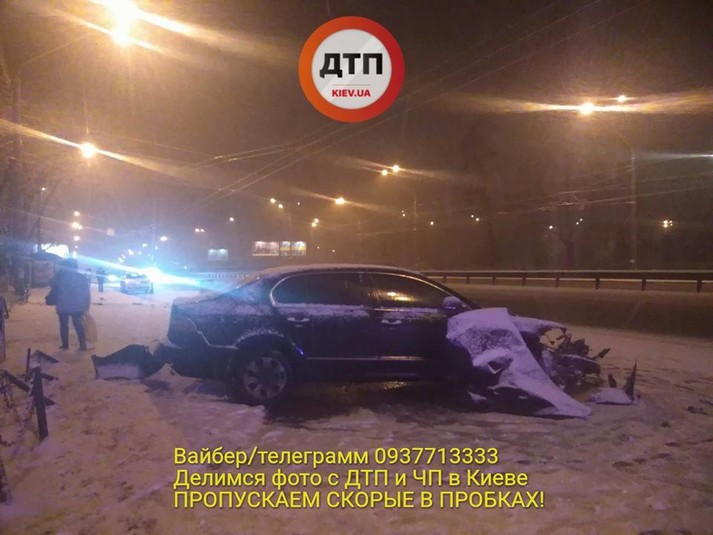 Сьогодні вночі на проспекті Перемоги автомобіль «Шкода» влетів у стовп. Про це інформує паблік dtp.kiev.ua, повідомляє «Главком».