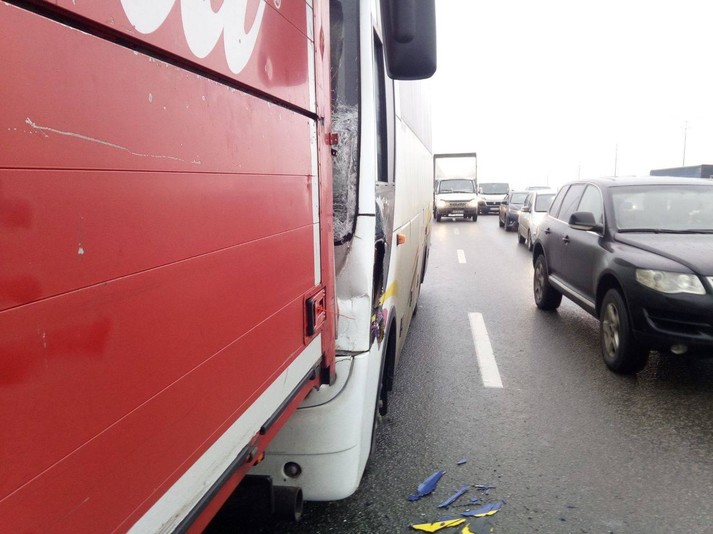 На Столичному шосе автобус врізався у вантажівку (фото, відео)