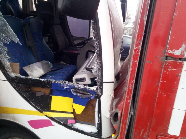 Водій автобус розповів, що відволікся на якусь мить і влетів у вантажівку, котра стояла через поломку у лівій смузі. Удар був доволі сильний.