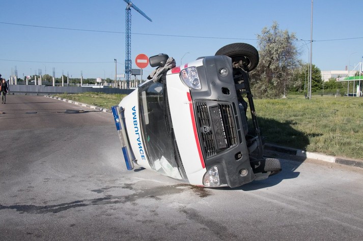 Щоб уникнути зіткнення, водій медтранспорту прийняв вліво і вилетів з проїжджої частини. Після чого перелетів через газон, вилетів на парковку торгового центру і намагався стабілізувати машину. Проїхавши близько 100 метрів, утримати машину на жаль не вдалося.