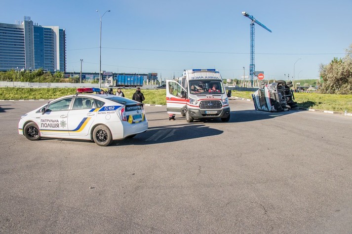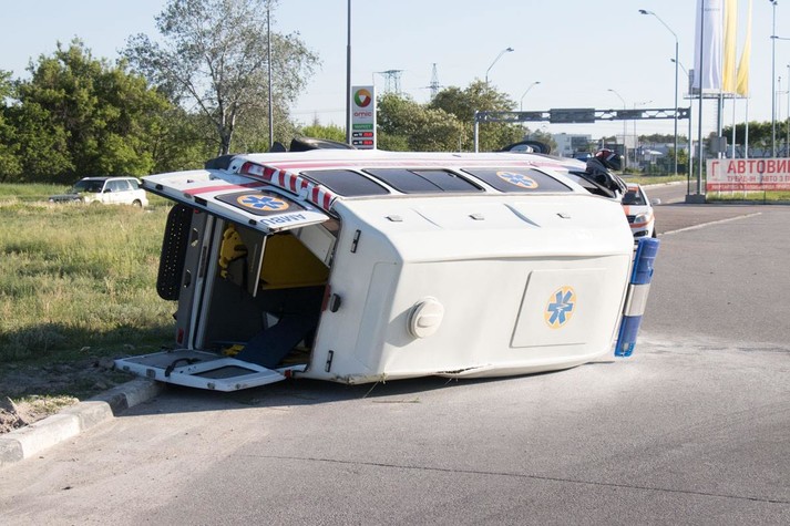 У п'ятницю, 11 травня, в Києві на Столичному шосе сталася ДТП: перекинулася машина швидкої допомоги.