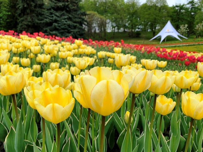 На території Печерського ландшафтного парку «Співоче» цього року розквітло понад 500 тисяч тюльпанів різних сортів та видів. Усі рослини були висаджені ще до зими, над квітковими композиціями працювали десятки дизайнерів та агрономів. Побачити красу на власні очі можна буде вже з 3 травня. Організатори виставки вирішили відкрити територію Співочого для всіх, хто зараз перебуває у Києві або має можливість сюди потрапити.