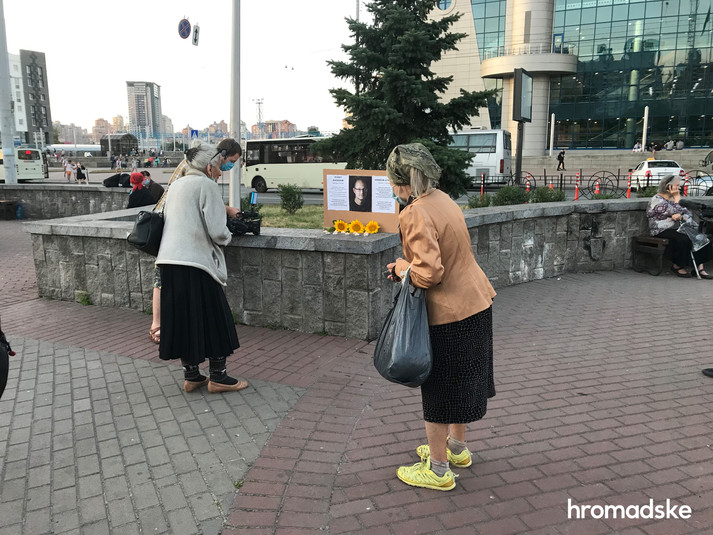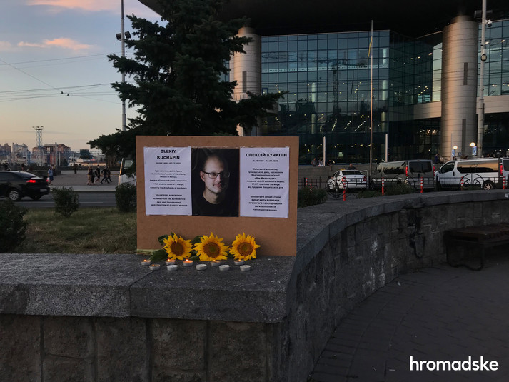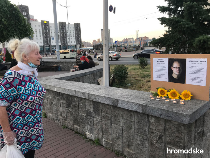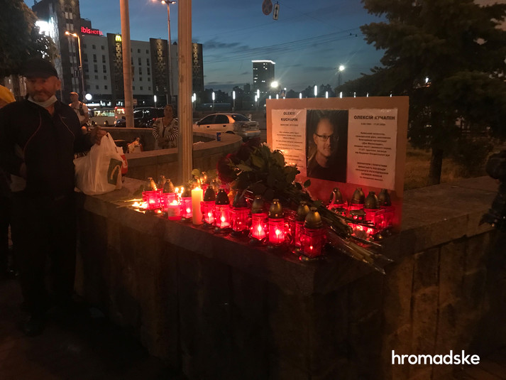 На місці постійного збору та роздачі їжі безхатьками на Південному вокзалі Києва 24 липня зібралося до двох сотень людей, щоб вшанувати пам’ять померлого активіста та волонтера Олексія Кучапіна.