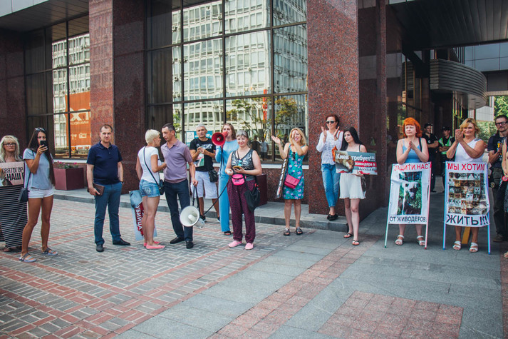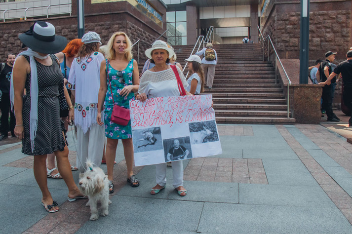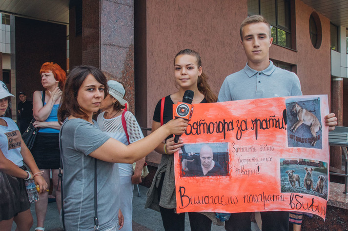 Активісти прийшли під будівлю суду з криками: «Ганьба», «Живодера в тюрму». Люди привели і своїх домашніх улюбленців. Також вони принесли з собою плакати з інформацією про злочини Олексія Святогора. Зоозахисники вимагають, щоб чоловіка суворо покарали.