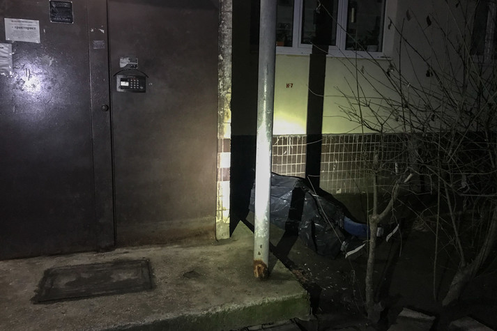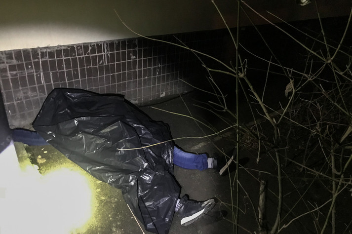 У ніч на вівторок, 17 грудня, в Голосіївському районі Києва виявили мертву людину. На вулиці Лятошинського, 4а (житловий масив Теремки-2) біля входу в під’їзд дев'ятиповерхового будинку лежало тіло хлопця.