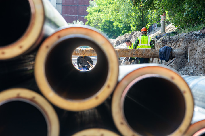 У Києві триває реконструкція зношених теплових мереж. На перетині проспекту Академіка Глушкова та вулиці Академіка Заболотного відбувається заміна 2,9 км аварійних теплових мереж, які пропрацювали більше 35 років. Про це повідомив заступник голови Київської міської держадміністрації Петро Пантелеєв.