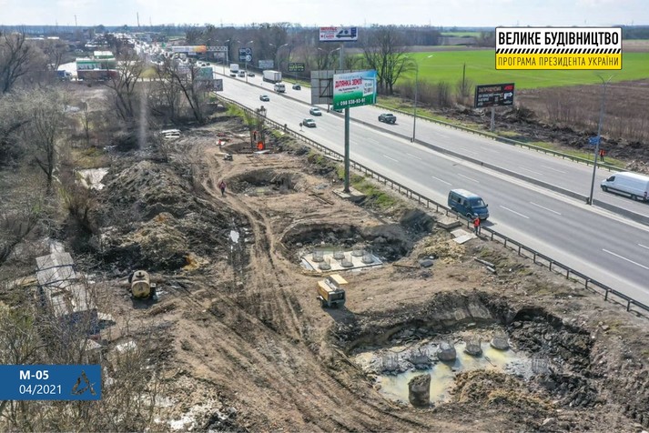 На трасі М-05 (Чабани) – ведуться земляні роботи, влаштування пальових фундаментів та опор естакади.