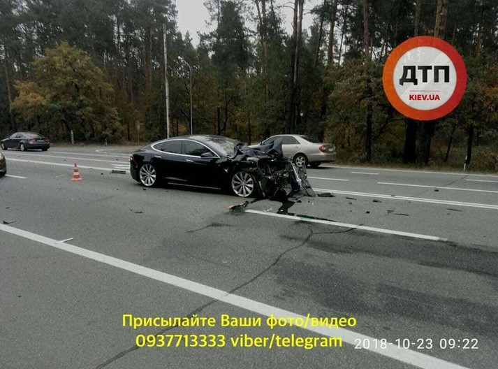 У вівторок, 23 жовтня, вранці на на Старообухівському шосе під Києвом зіткнулися електромобіль Tesla Model S і легковий автомобіль Skoda.