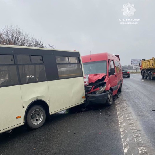 На трасі під Києвом зіткнулися три пасажирських автобуси, є постраждалі (фото)