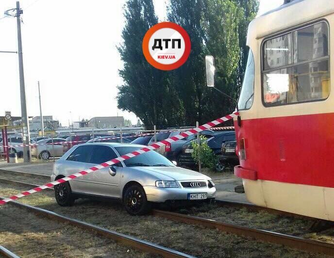 За словами свідків, водій автомобіля Audi (на європейській реєстрації) спочатку на вул. Милославській збив жінку на переході. А потім на вул. Закревського вилетів на трамвайні колії.