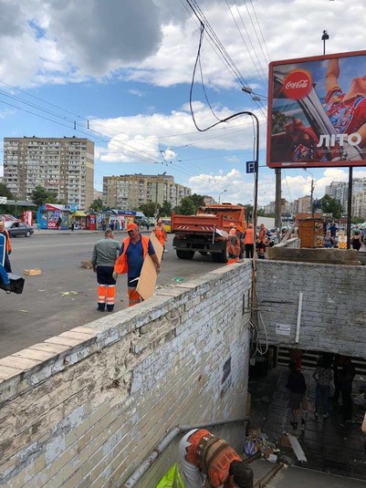На Троєщині демонтували МАФи у підземному переході (фото)