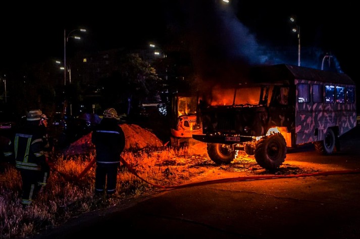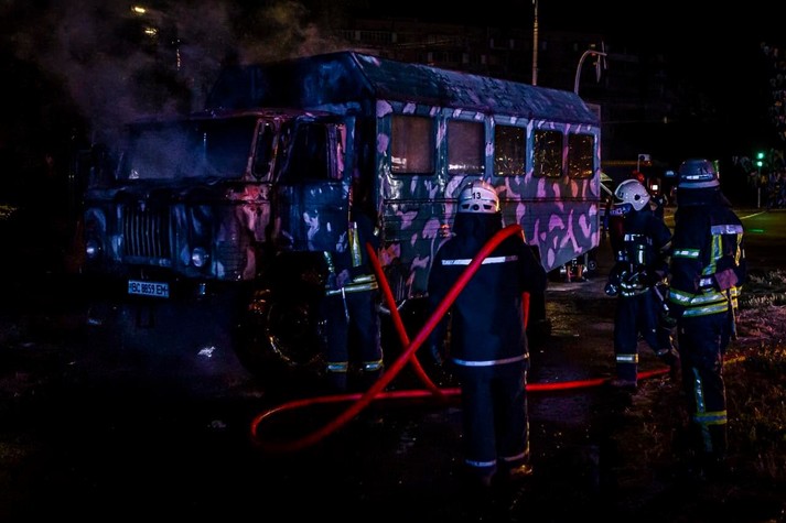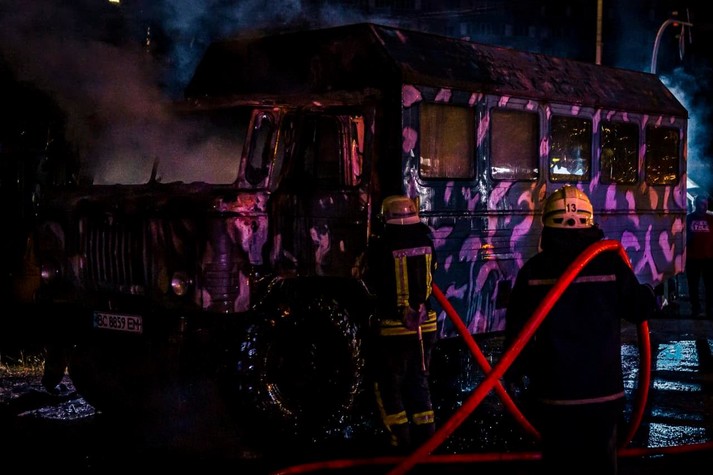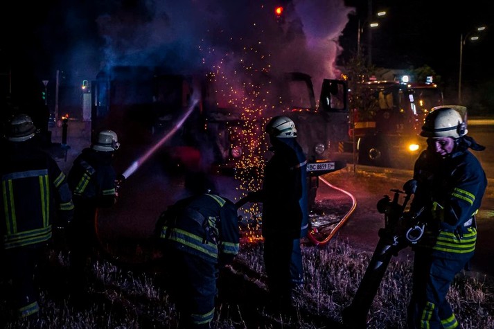 Вогнеборці встановили, що пожежа виникла в автомобілі ГАЗ-66, припаркованому на узбіччі проїжджої частини дороги.
