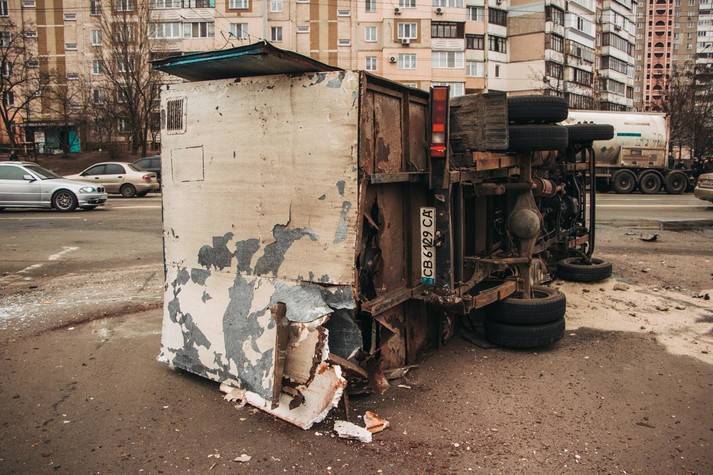 Від удару вантажівка перекинулася, а Opel врізався в дерево. Стрілка на спідометрі застигла на позначці 110 кілометрів на годину.