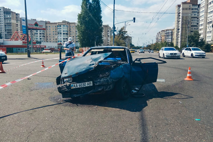 На Троєщині «Волга» вилетіла на тротуар і перекинулася: фото