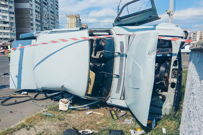 У мікрорайоні Троєщина в Києві автомобіль «Волга» в’їхала в натовп людей і перекинулася. Про це інформує паблік dtp.kiev.ua.