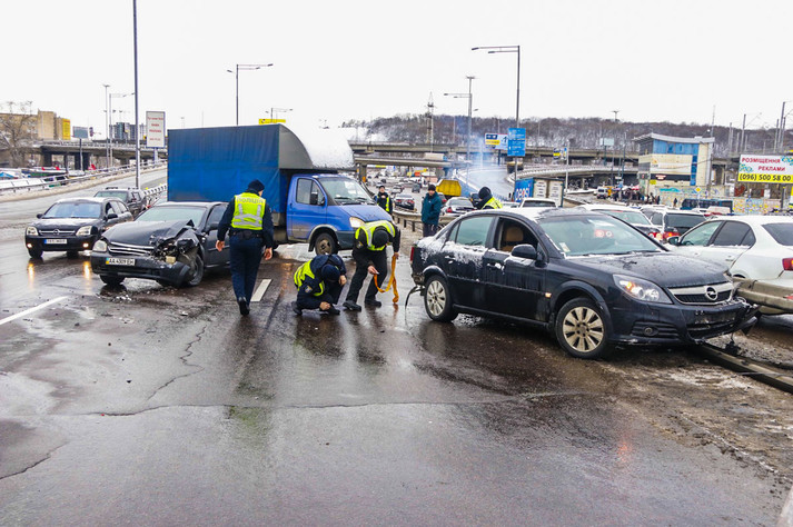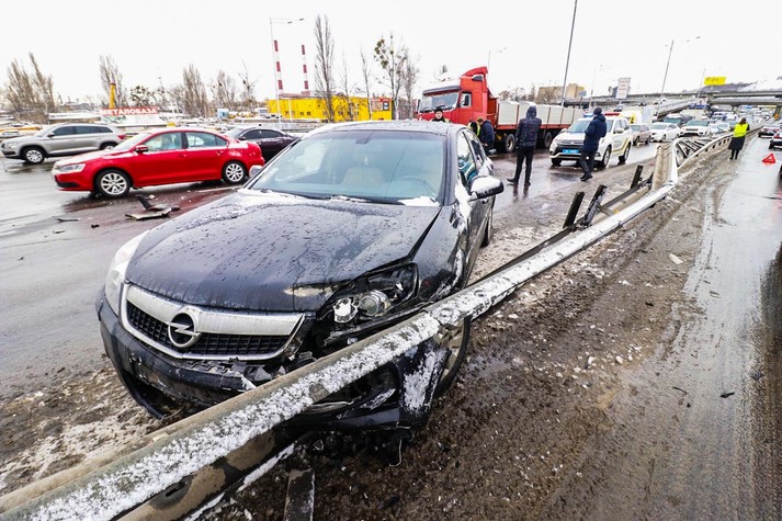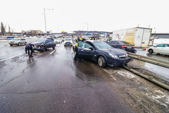 У середу, 13 лютого, на Столичному шосе в Києві сталося відразу три ДТП в радіусі 200 метрів. В одній з аварій зіткнулися автомобілі Opel і Chevrolet.