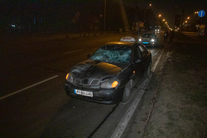 У ніч на четвер, 5 грудня, на Броварському проспекті в Києві сталася ДТП. На виїзді з Києва водій таксі Daewoo Lanos збив пішохода, який вибіг на середину дороги і раптово вирішив повернутися на пішохідну зону.