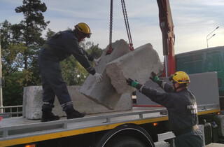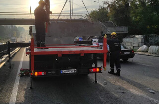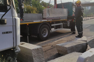 Рятувальники першого аварійно-рятувального взводу КАРС «Київська служба порятунку» оперативно прибули на місце виклику та за допомогою маніпулятора прибрали бетонні блоки з дороги. Рух транспорту на Житомирському шосе було відновлено.