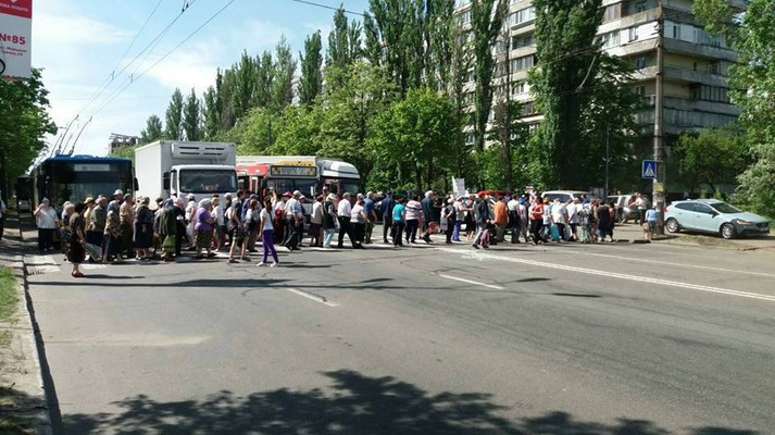 Так, мітингувальники перекрили дорогу на вулиці Маршала Гречка, біля видавництва «Київська правда». За словами очевидців, там не можуть проїхати навіть маршрутки, а водіям «майже колеса пробивають». Мешканці району розповідають, що вийшли на мітинг, щоб не допустити вирубку садів. На цьому місці, начебто, планують побудувати депо для Зеленої гілки метро на Виноградарі. Друга версія - люди зібралися протестувати проти знесення незаконних гаражів, пише «Вечірній Київ».