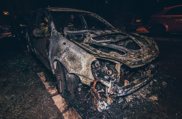 На Виноградарі під будинком дотла згорів автомобіль (фото, відео)