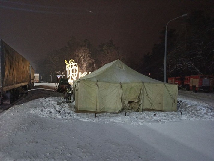 На восьми в’їздах до Києва силами Державної служби України з надзвичайних ситуацій розгорнуто пункти обігріву для водіїв у місцях відстою великогабаритного транспорту.
