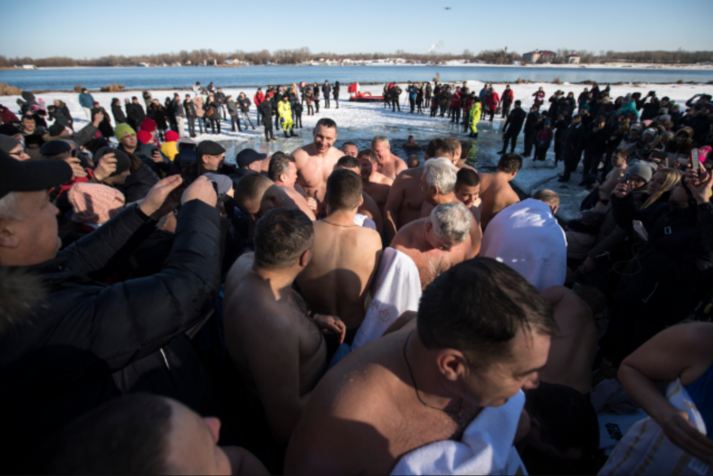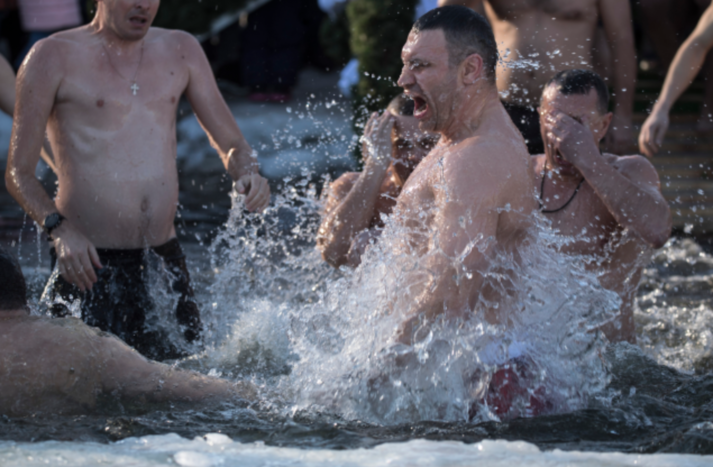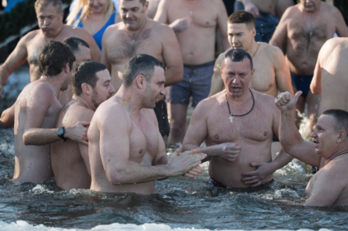 На Водохреще Кличко пірнав у Дніпро в парку «Наталка»