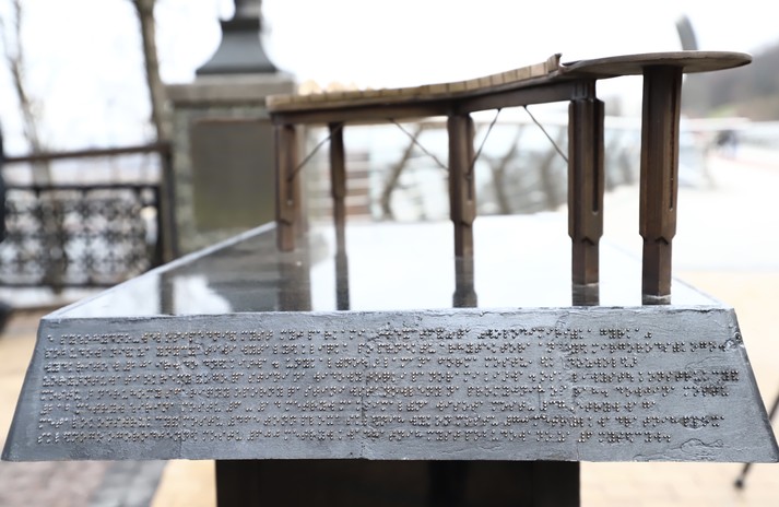 У столичному парку «Володимирська гірка» відкрили 3D-мініатюру пішохідно-велосипедного мосту із рельєфними тактильними табличками для осіб із порушеннями зору. Встановлення нової мініскульптури – це продовження інклюзивного туристичного маршруту від Софійського собору до парку «Хрещатий». Про це повідомила заступниця голови Київської міської держадміністрації Марина Хонда.