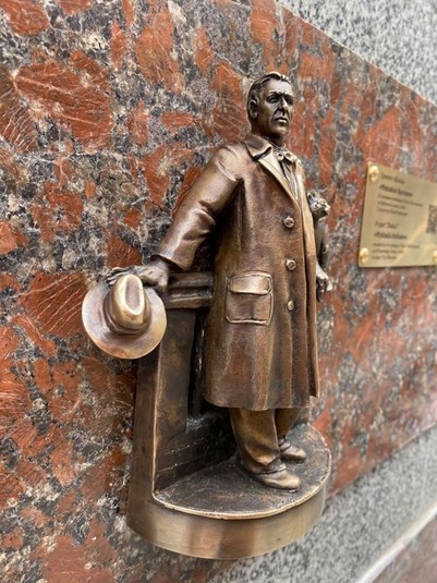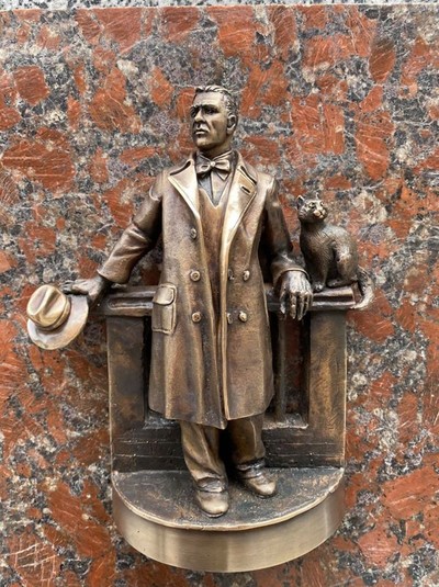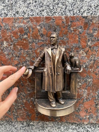 На фасаді будинку на вулиці Дегтярній, 29 у Подільському районі Києві (Воздвиженка) з’явилася бронзова мініскульптурка відомого письменника Михайла Булгакова.