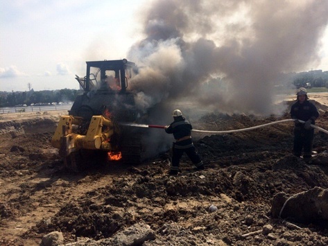 26 травня о 14:41 рятувальникам Подільського району повідомили, що по вул. Електриків, 12, горить бульдозер. Про це повідомляє прес-служба ГУ ДСНС у Києві.