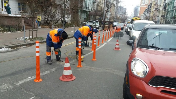 Комунальники встановлюють делінеатори для відокремлення смуги руху