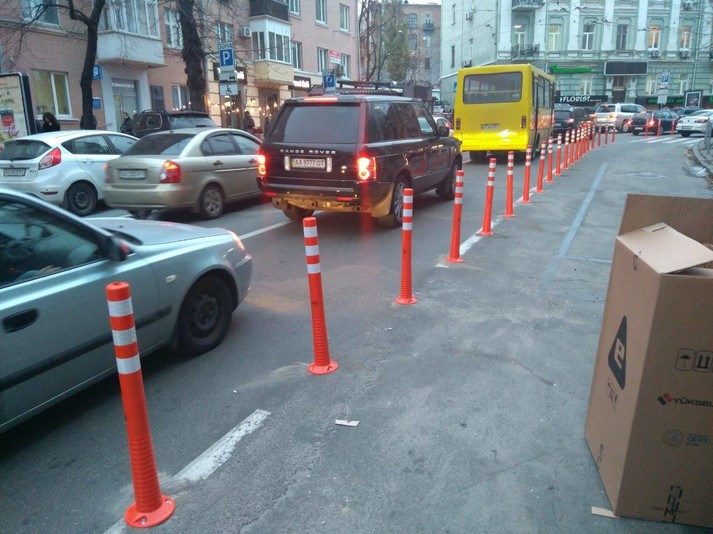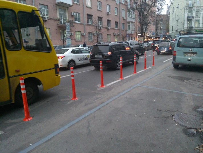 «Співробітники КП «Центр організації дорожнього руху» за дорученням Департаменту транспортної інфраструктури здійснюють роботи по монтажу делінеаторів для фізичного відокремлення виділеної смуги громадського транспорту - і відповідно зниження впливу ускладнень руху транспорту на рух громадського транспорту та унеможливлення паркування», - йдеться в повідомленні.