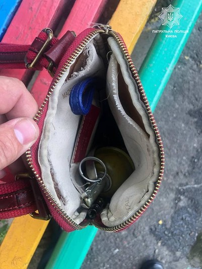 У Києві затримали чоловіка, який ходив вулицями міста з гранатою у сумці. Про це повідомила Патрульна поліція Києва.